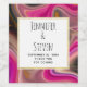 Wedding thank you bottle labels with a groovy looking abstract design. Pink and black colours mix and mingle together in a swirling motion. Sprinkles of faux gold glitter in between the layers. A white square frame with a faux gold foil border, layered over top with your personalised text inside.
