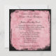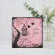 This whimsical pink and black wedding invitation has a grungy floral background with an ornate birdcage, and a pair of lovebirds framed in distressed florals. If you require any other matching items in this design, please email your request to niteowlstudio@gmail.com. Matching items are shown below.