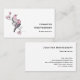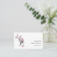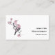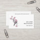Business cards with a watercolor painting. 2 pink and black birds sitting on a tree branch with pink blossoms.