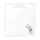 Notepad with a watercolor painting. 2 pink and black birds sitting on a tree branch with pink blossoms.