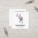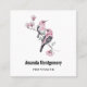 Business cards with a watercolor painting. 2 pink and black birds sitting on a tree branch with pink blossoms.
