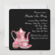 Elegant black background with a pink and white polka dot teapot, teacup and cupcake bridal tea party invitation. This pretty pink and black bridal tea party invitation is easily customised for your party or event by adding your event details, font style, font size & colour, and wording.