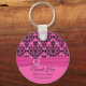 Pink and Black Damask Keychain
