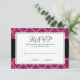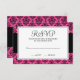 A stylish pink and black damask pattern is featured on this elegant RSVP card.