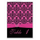 Pink and Black Damask Table Number Card
