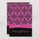 This pink and black damask pattern wedding invitation would add a dramatic touch to your wedding, or other special event. ****PLEASE NOTE that the ribbon and diamonds are printed images, and are not real. The text and paper is all customisable. If you require any other matching items, please email me your request. Existing matching items are shown below.