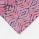 Fleece blanket with a striped pattern of painted diamond shapes in black on a pink background. The painted texture gives this blanket a tribal mud cloth appearance.