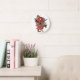 Pink and Black Floral Dragon on Round Clock