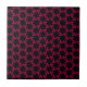 This work showcases a captivating tessellation pattern featuring black flowers surrounded by vibrant pinkish red star shapes arranged in a repeating format. The flowers are intricately designed with sharp points, creating a dynamic contrast that is both visually striking and mesmerizing. The use of the pinkish red against black enhances the visual impact, making it a bold and eye-catching piece suitable for various decorative contexts.
