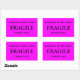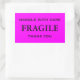Stickers with: Fragile. Handle with Care. Thank you. Black text on a pink background. Personalise with your information using the easy templates. Font colour, font style, font size, and pink background colour are customisable.