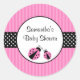Pink and Black Ladybug Striped Dots Baby Shower Classic Round Sticker