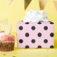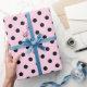 Pink and black polka dot wrapping paper. Custom background colour behind the polkadots pattern. Great polkadotted gift wrap for Birthday, Wedding and Christmas presents. Change the quantity to get the cheapest price per role.