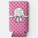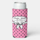 Pink and Black Polka Dot White Bow Personalised Seltzer Can Cooler