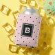 A modern and customisable can cooler featuring black and pink polka dots pattern. Personalise this cooler with your own initials or a loved ones. This will be perfect as a gift.
