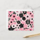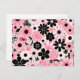Pink and Black Retro Botanical Flowers Pattern Postcard