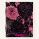 Beautiful pink and black roses cover this femme Goth notebook.