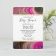Baby shower invitation with a groovy looking abstract design. Pink and black colours mix and mingle together in a swirling motion. Sprinkles of faux gold glitter in between the layers. A rectangle frame with faux gold foil layered over top with your personalised text inside.