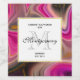 Wine making labels with a groovy looking abstract design. Pink and black colours mix and mingle together in a swirling motion. Sprinkles of faux gold glitter in between the layers. A white square frame with a faux gold foil border, layered over top with your personalised text inside.