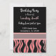A black background accented by a border of pink and black zebra print with a band of darker pink shaded edges. Customize with all of your birthday information as desired.