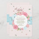 A floral invitation with a light pink background, a blue centre ribbon and a wreath of pink and blue flowers.(<a href="https://www.freepik.com/free-photos-vectors/flower">Flower vector created by freepik - www.freepik.com</a>). <br/><br/>The card is easy to customise with your wording, font, font colour and choice of six paper types.<br/><br/>Not exactly what you're looking for? All our products can be custom designed to meet your needs at no extra charge.<br/><br/>Simply contact us at askcottonlamb@gmail.com<br/><br/>Coordinating products available: