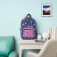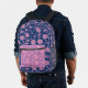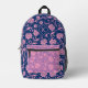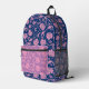 Pink and blue floral damask pattern monogram printed backpack