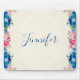 Personalised mousepad with a frame of pink and blue wildflowers, posies and pansies with various sprigs and leaves. Colourful and bright. The centre is a faux parchment image. Soft and summery.