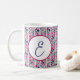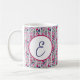 Watercolor pink and blue flowers and white stripes pattern, edit letter