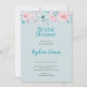Pink and Blue Flowers Blue Bridal Shower Invitation