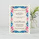 Wedding invitation with pink and blue wildflowers with various sprigs and leaves surround the edges making a pretty frame. Colourful and bright. The centre is a faux parchment image. Personalise with your wedding details. Simple and elegant.
