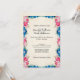 Wedding invitation with pink and blue wildflowers with various sprigs and leaves surround the edges making a pretty frame. Colourful and bright. The centre is a faux parchment image. Personalise with your wedding details. Simple and elegant.