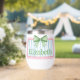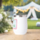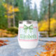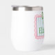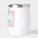 This cute thermal wine tumbler features a pink frame with blue and white stripes and topped with a preppy green and white gingham plaid bow. Personalize with your choice of name or special text. Fun for personalized party favors and gift bags.