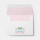 These cute envelopes feature a pink frame with blue and white stripes and topped with a preppy green and white gingham plaid bow on the back and pink and white polka dots on the inside. Personalize with your choice of name on the back and address or special text on the back flap.