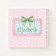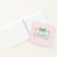 This cute notebook features a pink frame with blue and white stripes and topped with a preppy green and white gingham plaid bow on a background of pink and white polka dots on each side. Personalise with your choice of name or special text on the front and back. Fun for personalised party favours and gift bags.