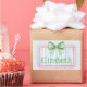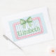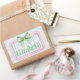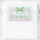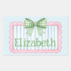 This cute rectangle sticker features a pink frame with blue and white stripes and topped with a preppy green and white gingham plaid bow. Personalize with your choice of name or special text.