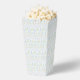 This sweet popcorn favour box features a pastel pink and blue grandmillennial pattern in the background.