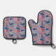 Pink and Blue Hand Drawn Floral Block Print Oven Mitt & Pot Holder Set
