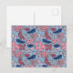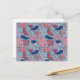 Pink and Blue Hand Drawn Floral Block Print Postcard
