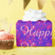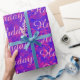 This pink and blue "Happy Birthday" wrapping paper will look pretty on the gift table and is great for girls' birthdays.