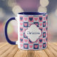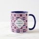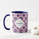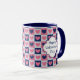 This mug was designed to be a pretty Valentine's Day gift, but it can easily be adapted to make a birthday or special occasion gift for her. It features a pretty pink, navy blue and white square hearts pattern as the background. Each side of the mug has an ornate white banner which is lined in matching blue and pink, and carries your custom text. Easily change it to her name on one side, your message on the other, or anything else you'd like. Very attractive without being glitzy or corny!
