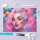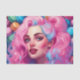 Indulge your sweet tooth with this charming design! A cheerful young woman smiles as she sits amidst a colourful array of creamy macarons. Her hair is dyed a vibrant shade of pink fading into sky blue, matching the pastel hues of the treats surrounding her. Piles of the petite French cookies can be seen in delicate shades of rose, mint, lemon and more. Bring a playful pop of colour and whimsy to your space with this eye-catching paper, perfect for crafting or home decor. Whether using as scrapbook paper, notebook covers, or wall art, it adds a fun feminine flair.