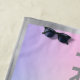 Colourful ombre in pink and blue with a touch of purple. Silver-grey geometric frame. Tranquillity-customisable text.