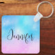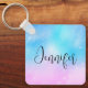 Personalised keychain with a whimsical background. A pastel pink and blue gradient colour scheme. Little white stars scattered around. Whimsical and magical design.
