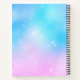 Spiral notebook with a whimsical background. A pastel pink and blue gradient colour scheme. Little white stars scattered around. Whimsical and magical design.