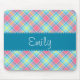Pink and Blue Plaid Pattern Mouse Pad