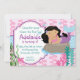 Pink and Blue Polka Dots Brunette Mermaid Birthday Invitation