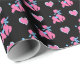 Pink and Blue Poodles and Hearts on Black Wrapping Paper