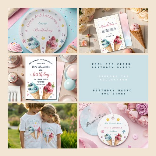 Ice Cream Cool Birthday Twins Boy And GirlDesigned by Dalia Hasan