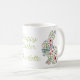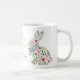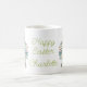This Easter holiday ceramic mug features adorable spring rabbits of pink and blue wildflowers and leaves. Personalize with your choice of name or special text. Fun for Easter gift baskets and party favors.