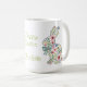 This Easter holiday ceramic mug features adorable spring rabbits of pink and blue wildflowers and leaves. Personalize with your choice of name or special text. Fun for Easter gift baskets and party favors.