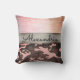 On this stylish pillow is a dusky pink frosted glass texture along with a shimmery silver ribbon where you can personalise it to make it uniquely your own then below that is a pink and brown camouflage pattern for contrast. Stylish chic vibes.